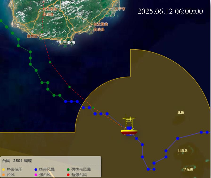 2025年6月12日,由我中心装备研究院自主研发,部署在国家海洋综合试验场(深海)的锚系资料浮标在1号台风“蝴蝶”过境期间,成功获取了风眼核心区的高精度实测数据,标志着中心深海观测技术迈上新台阶!作为国家海洋综合试验场(深海)的重要观测装备,该浮标经受住了极端海况考验,为海洋预报、防灾减灾和科学研究提供了宝贵数据支撑。